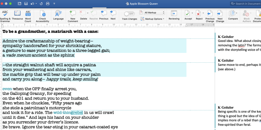 Substantive editing helps to streamline & refine your text to reveal your best writing, your strongest message. I work with your writing from its bones (structure) to its skin (style). I analyze technique, grammar, spelling, form & more, making edits within the text & leaving comments to ensure I am working towards your goal. My rates start at:
